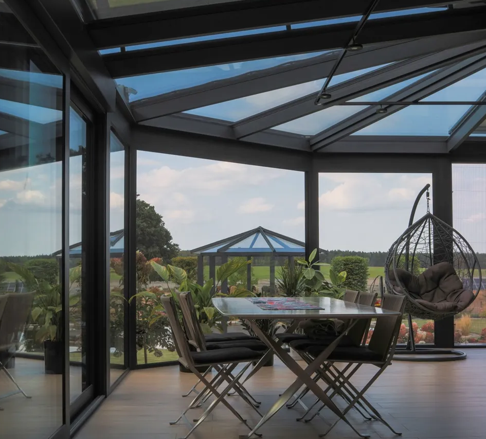 Centralnym elementem ogrodów zimowych jest ich przeszklona konstrukcja. Duże powierzchnie szyb umożliwiają maksymalne wykorzystanie naturalnego światła, co tworzy jasne i przytulne wnętrze, idealne na oranżerię lub przestrzeń wypoczynkową.